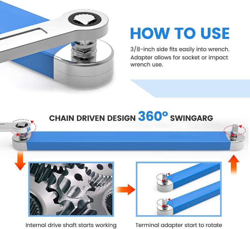 Impact ready offset extension wrench, tight reach extension wrench, 1/2",15" impact ready socket wrench tool,1/4" stable 3/8" square drive adapter,dealsforyoudays
