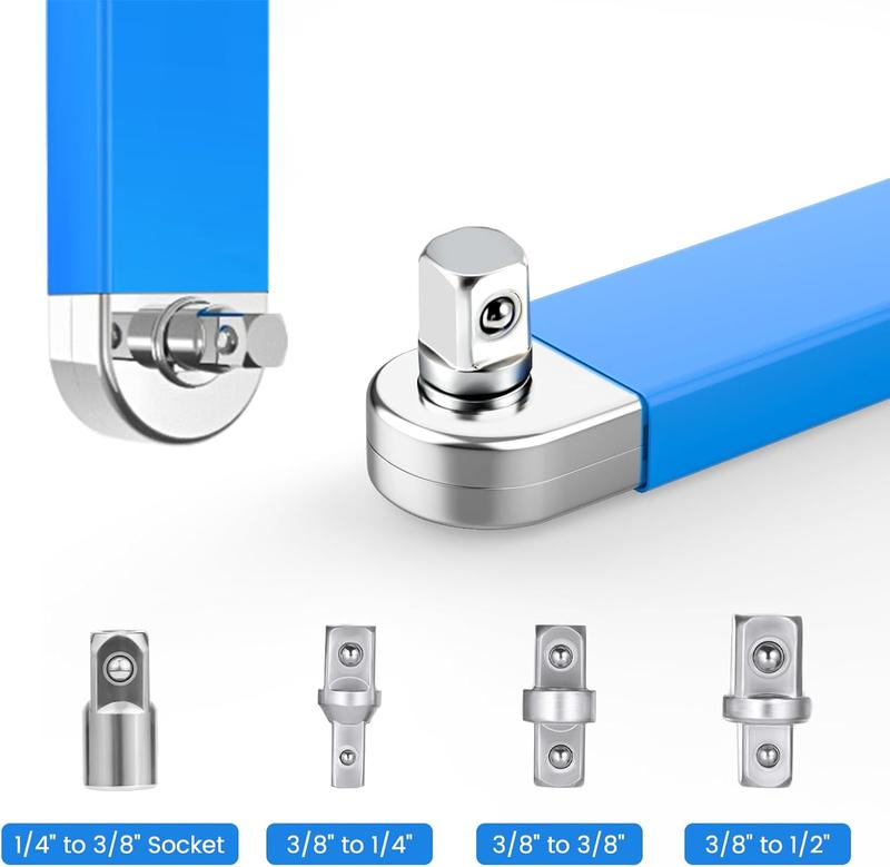 Multiple Square Drive Adapters: Includes 1/4", 3/8", and 1/2" adapters, allowing compatibility with a wide range of sockets.
